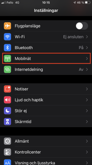 Öppna inställningar och klicka på mobilnät.