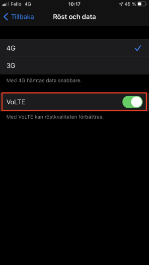 Om din iPhone inte hittar VoLTE.