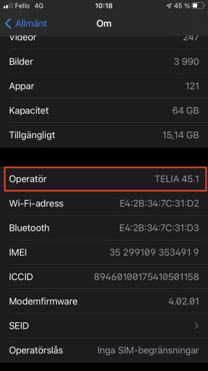 Du kan kontrollera att din mobil har VoLTE i dina inställningar. Välj Allmänt > Om > Klicka på Operatör, fältet kommer då visa IMS-status som ska vara Röst.