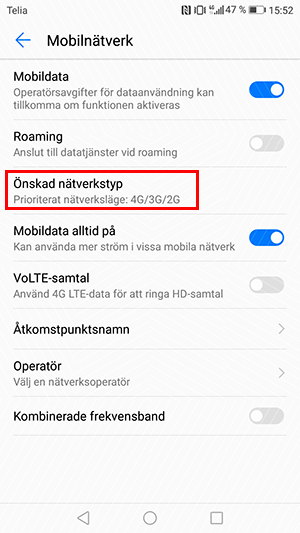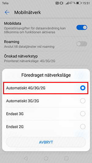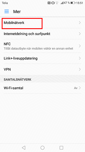Klicka på Mobilnätverk.